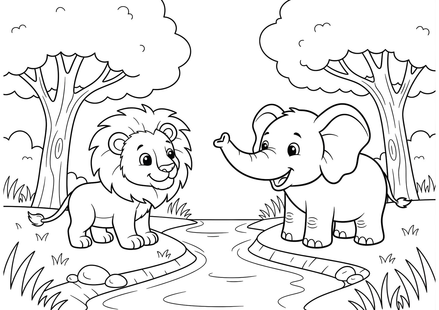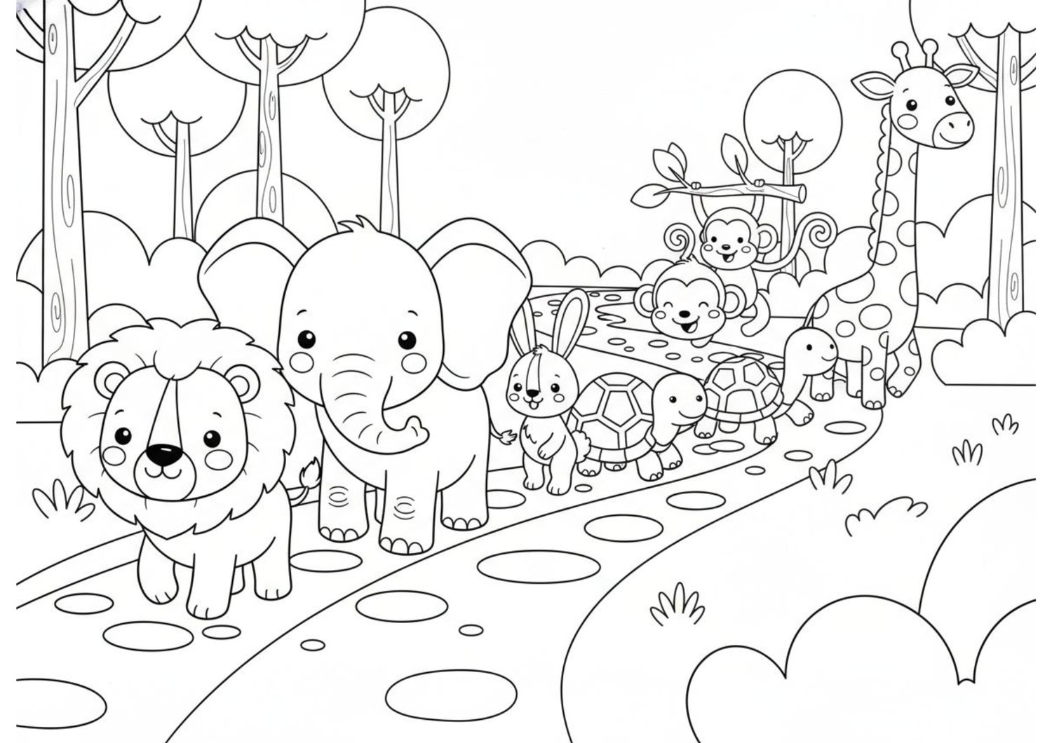 Kids Coloring Book PDF, Animal Coloring Pages, Forest Friends Adventure, Simple Coloring for Toddlers, Preschool Activity Book, Cute Lion and Elephant Art, Printable Coloring for Kids, Large Outline Coloring, 40 Page Activity Pack, Early Childhood Creativity.