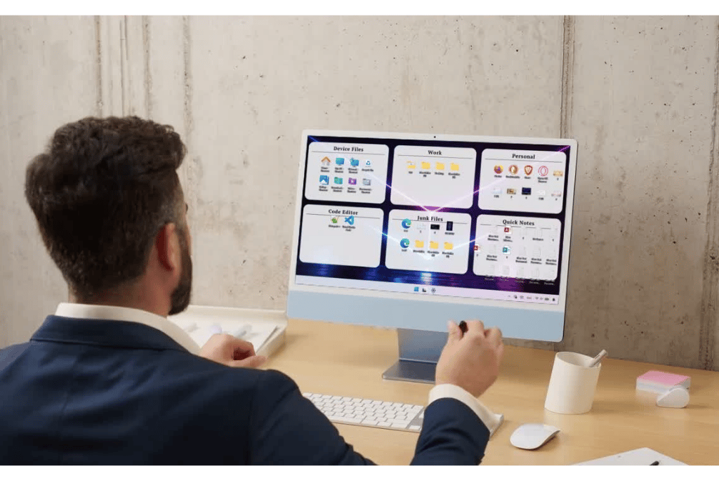 This minimalist 6-zone desktop wallpaper helps you organize your workspace visually and reduce clutter.
