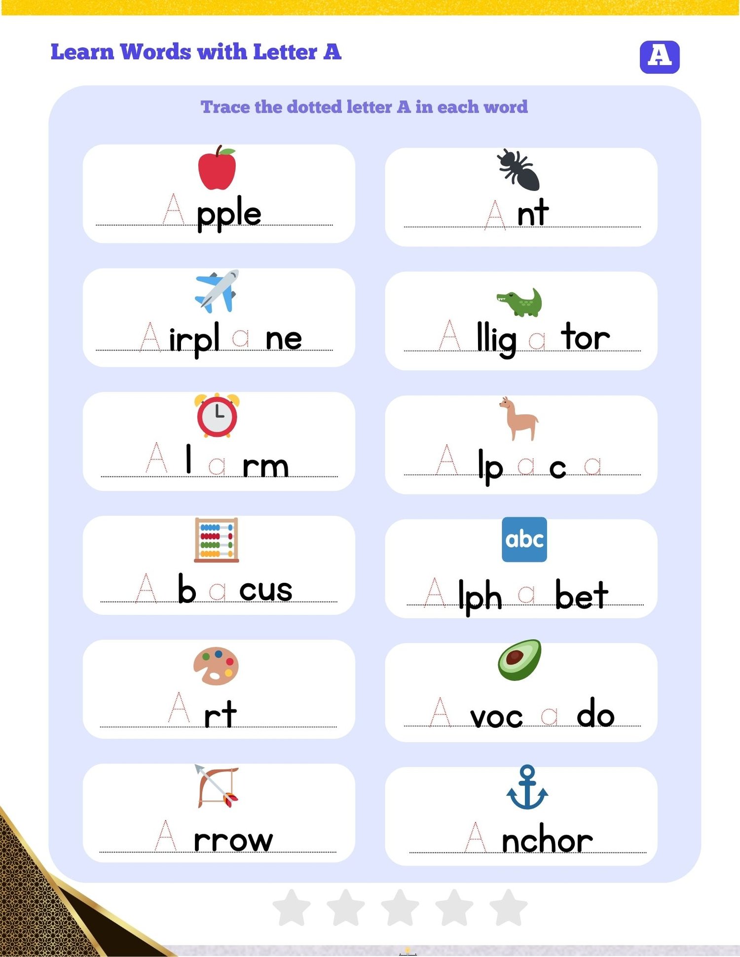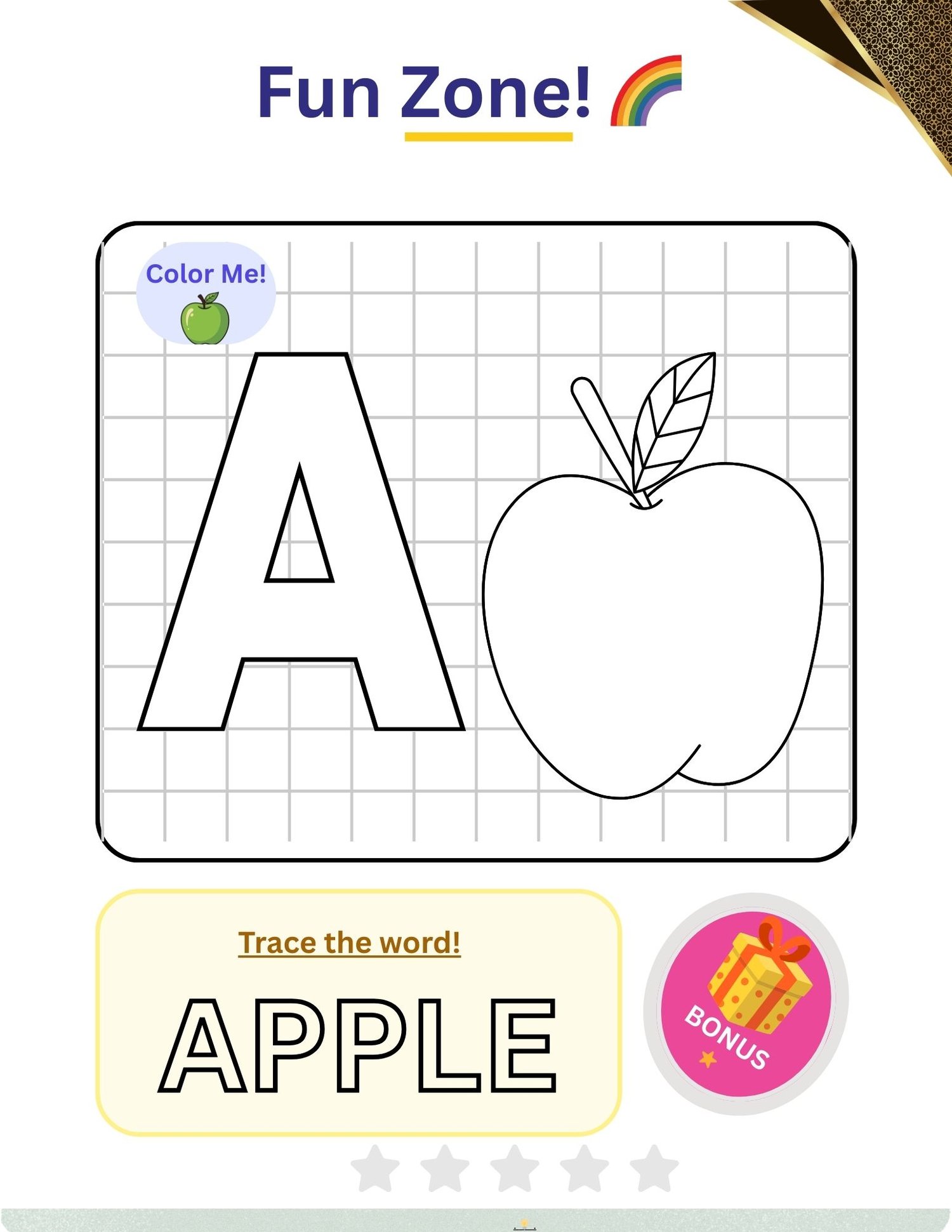 - Deep Dive Learning: 5 dedicated pages for every letter (A-Z) covering tracing, coloring, mazes, and recognition.