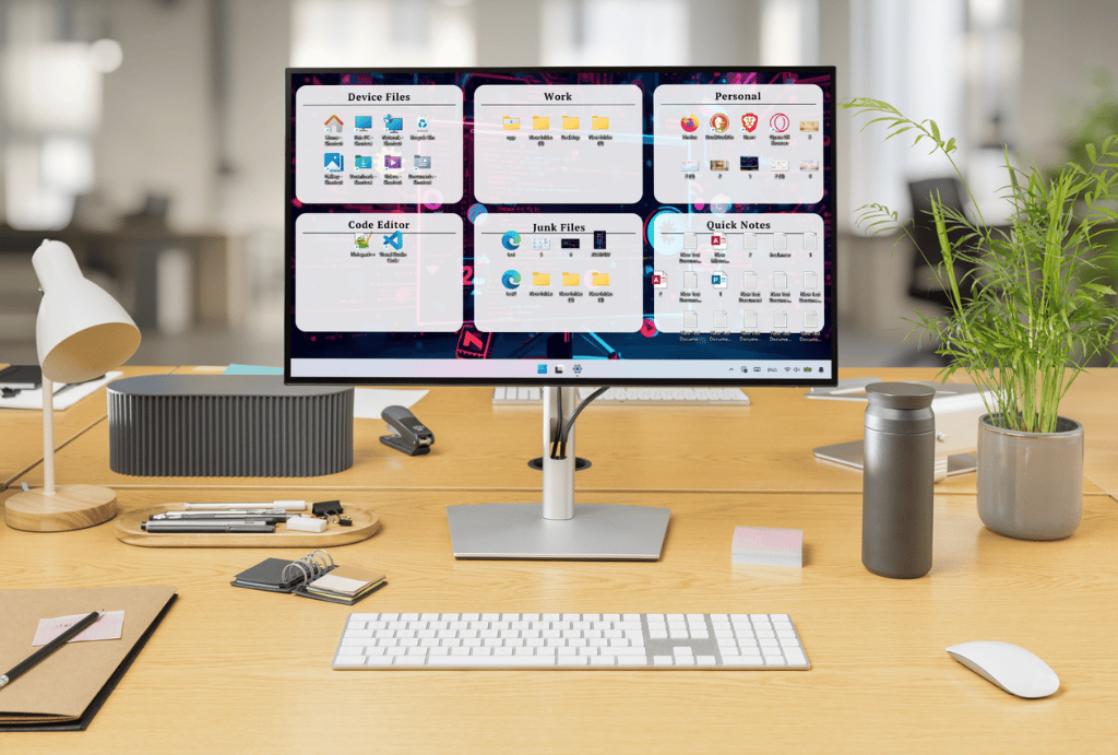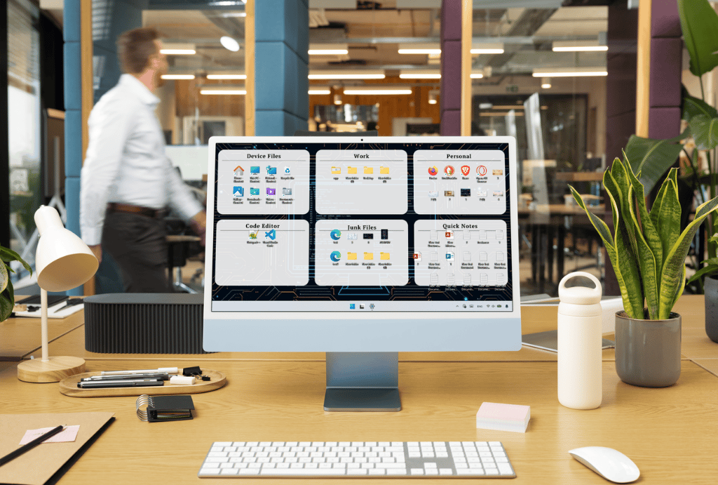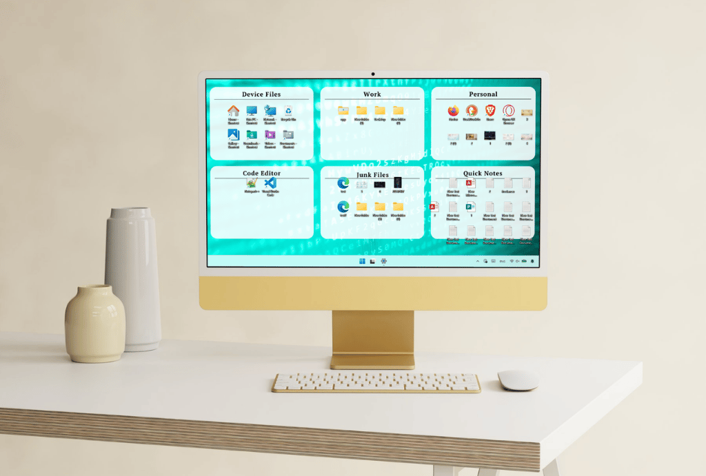 No software required — just set the wallpaper and start organizing your desktop visually.