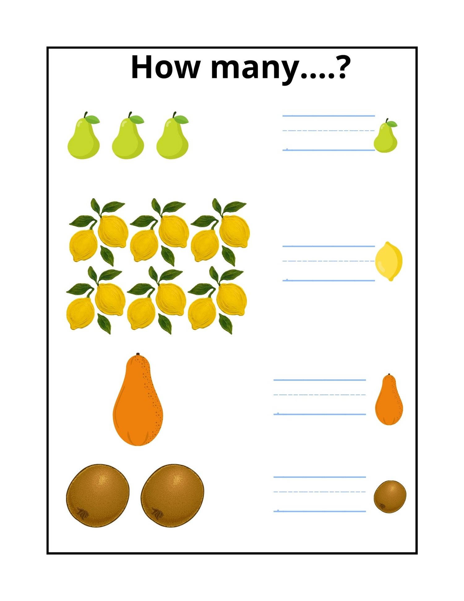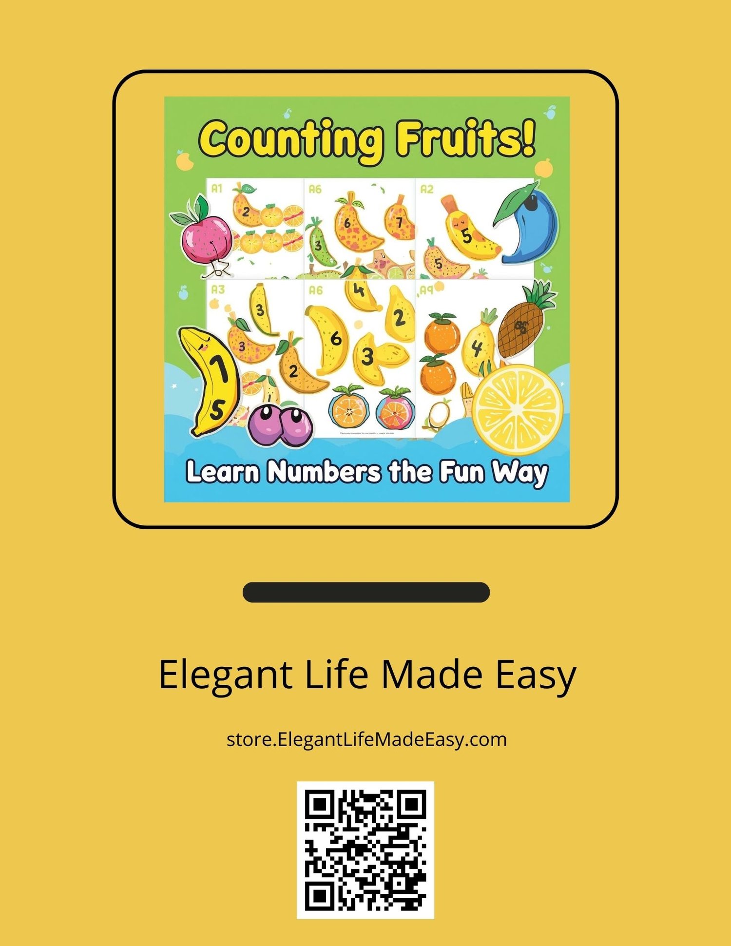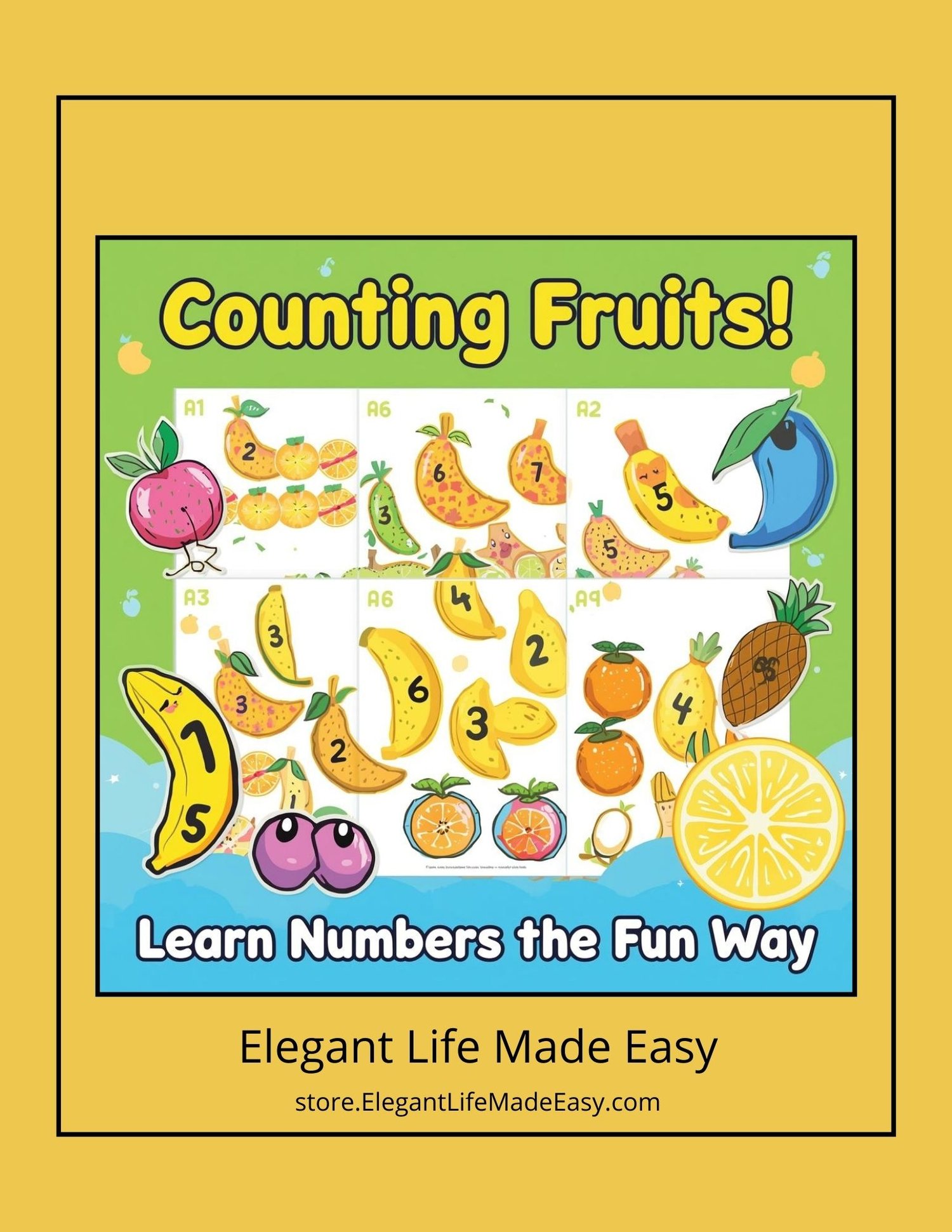 - Counting Fun: Engaging fruit illustrations to help kids practice counting objects.