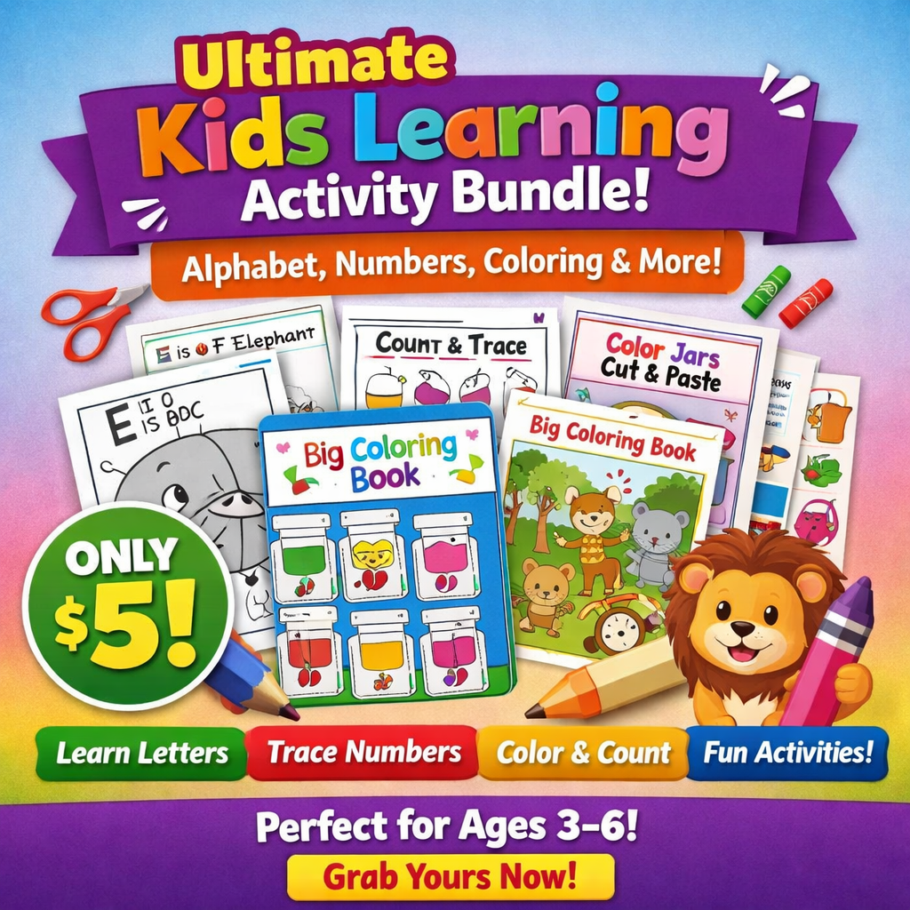 📚 Ultimate Kids Learning Activity Bundle – Alphabet, Numbers, Coloring & Creative Fun (Ages 3-6) – All-In-One Educational Worksheets Pack