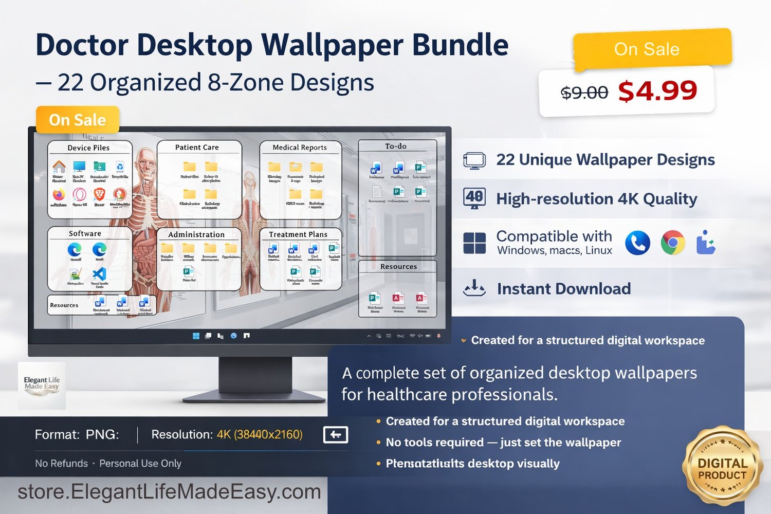This bundle includes 22 professionally designed desktop wallpapers created for doctors and healthcare professionals who want a structured and calm digital workspace.
